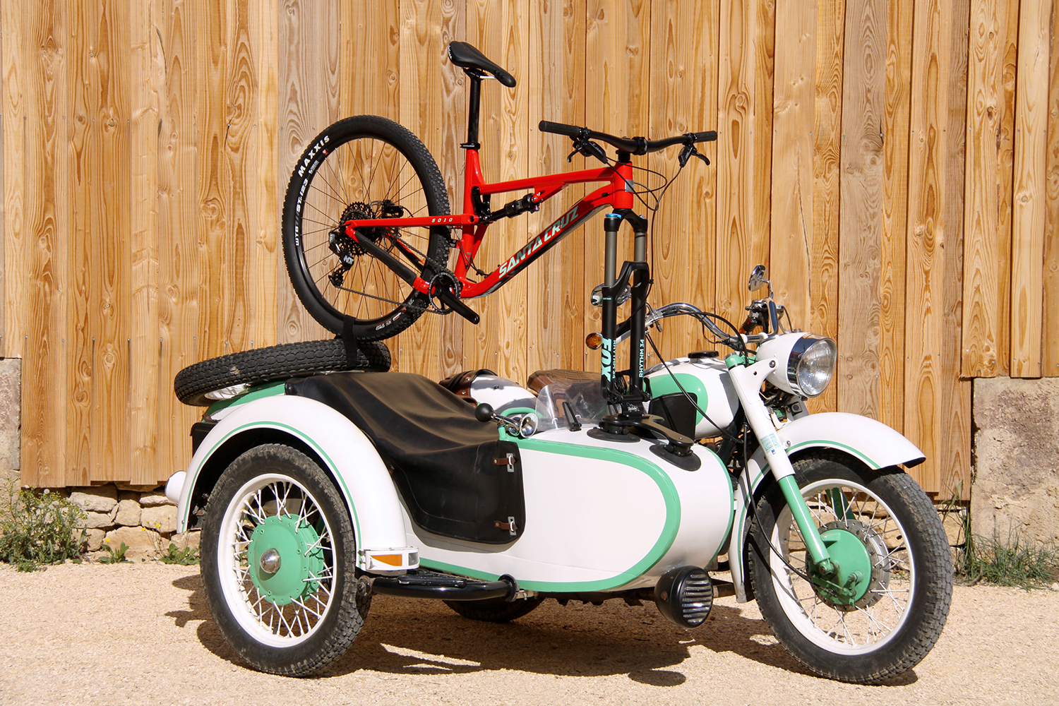 SEASUCKER porte vélo talon sur moto side car Santacruz 5010 A